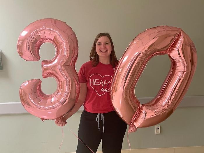 I walk because I am a congenital heart defect survivor. I have a condition called Polysplenia Heterotaxy Syndrome and I received open heart surgery as an infant. This year we are celebrating 30 years of my strong heart!
